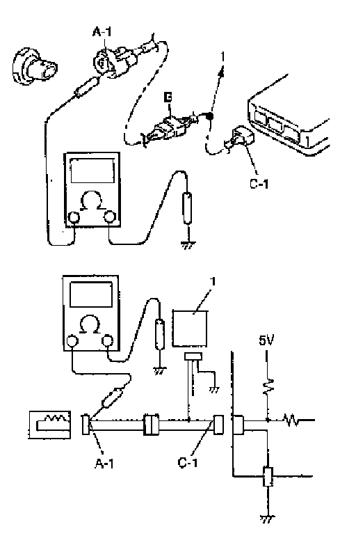 b. Also, if measured values were as listed in the following, it means that there is a resistance (abnormality) of such level that corresponds to the voltage drop in the circuit between terminals A-1 and B-1.