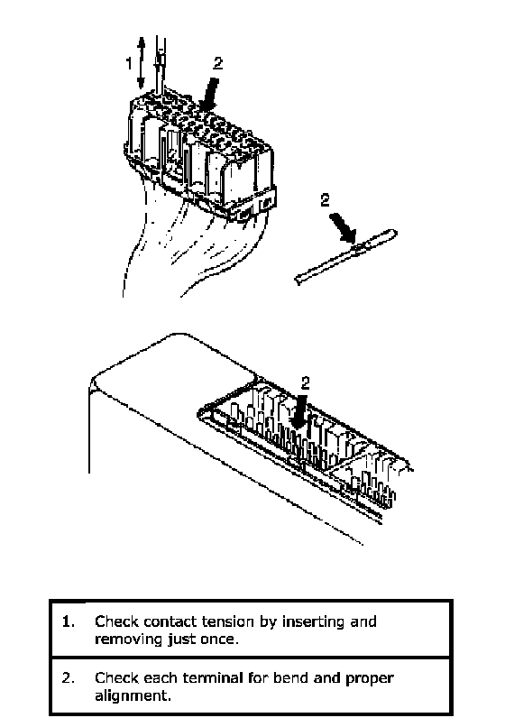 Check each connector terminal in problem circuits carefully to ensure good contact tension by using the corresponding mating terminal.