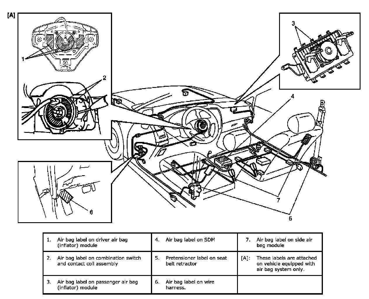 Warning, Caution and Information Labels LocationThe figure shows main labels among others that are attached to vehicle component parts. When servicing and handling parts, refer to WARNING / CAUTION instructions printed on labels. If any WARNING / CAUTION label is found stained or damaged, clean or replace it as necessary.