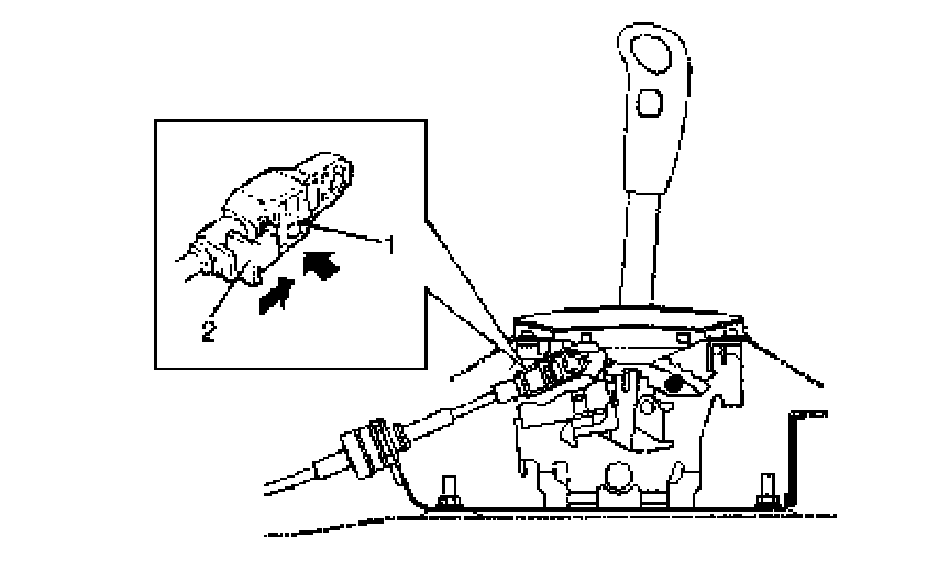 7. With both selector lever and transmission range sensor kept each "N" position, drive cable end holder (1) in until it locks cable.