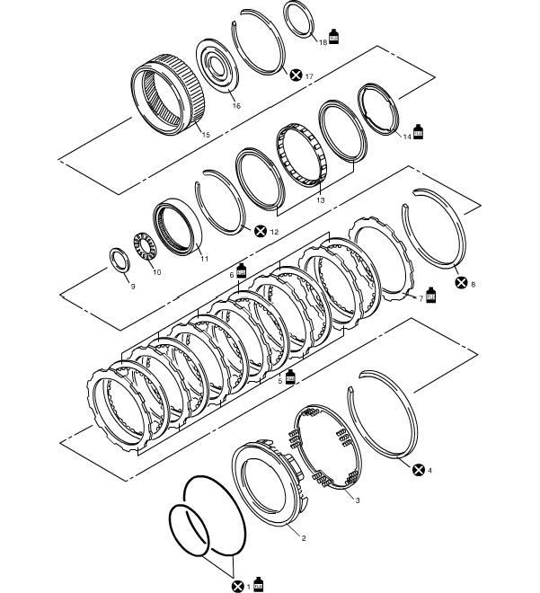 1ST / Reverse Brake and One-Way No. 2 Clutch Components (part 2):