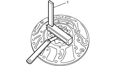Using a straightedge (1) and a feeler gauge, measure side clearance between gears and pump body.