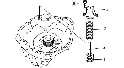 3. Install forward clutch accumulator spring (3) and forward clutch accumulator cover (4) with 2 bolts.