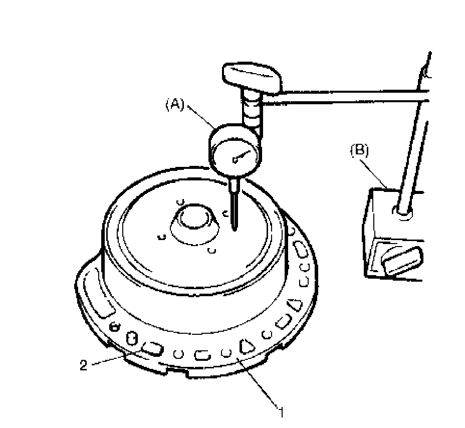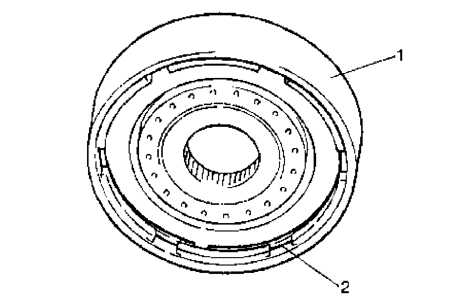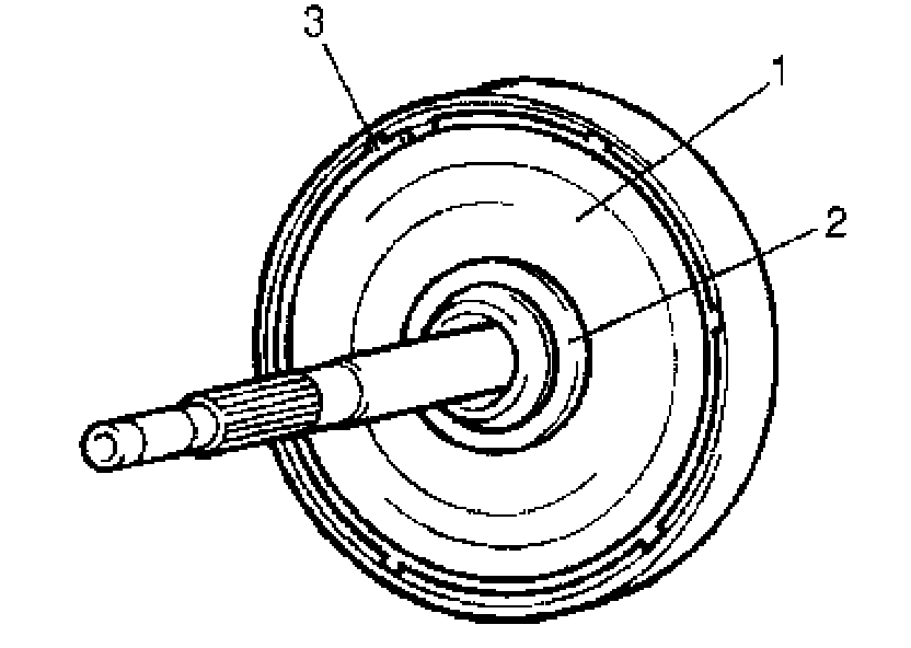 1. Remove sun gear input flange (1) with thrust washer (2) installed by removing retainer ring (3)