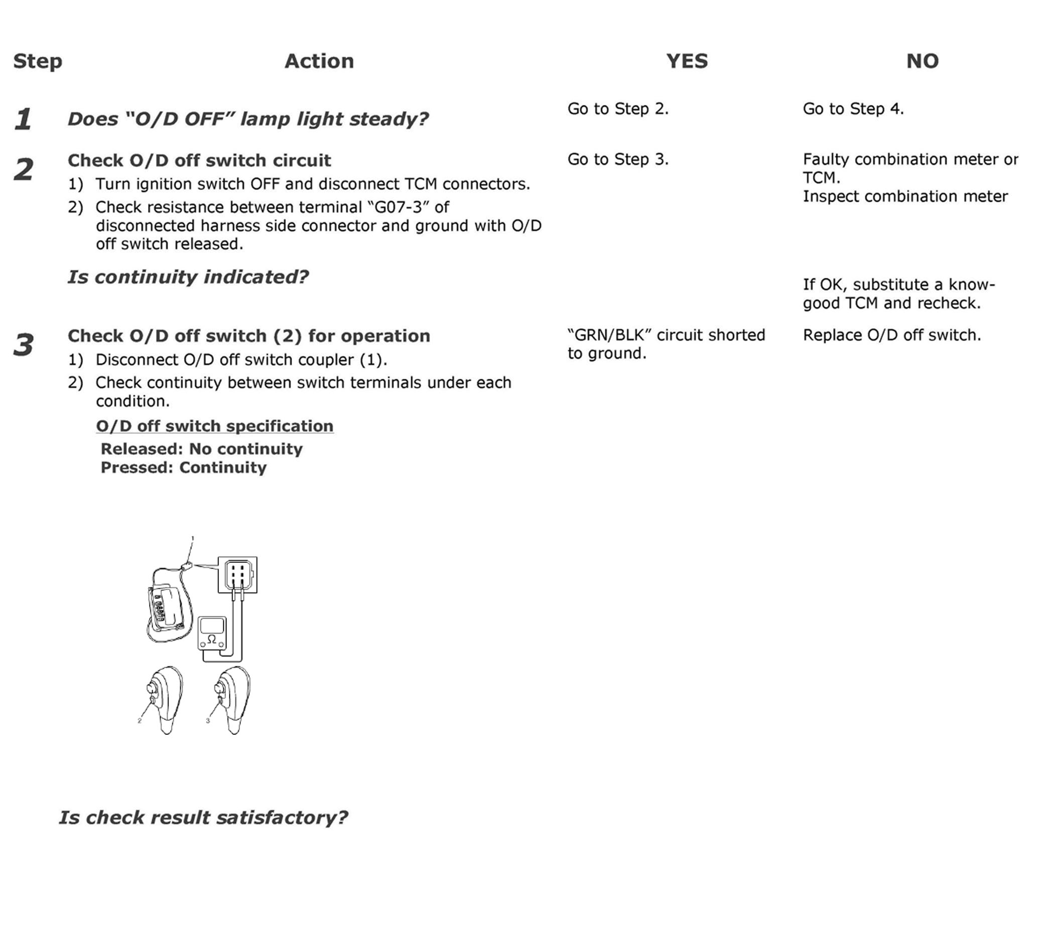 "O/D Off Lamp" Circuit Check