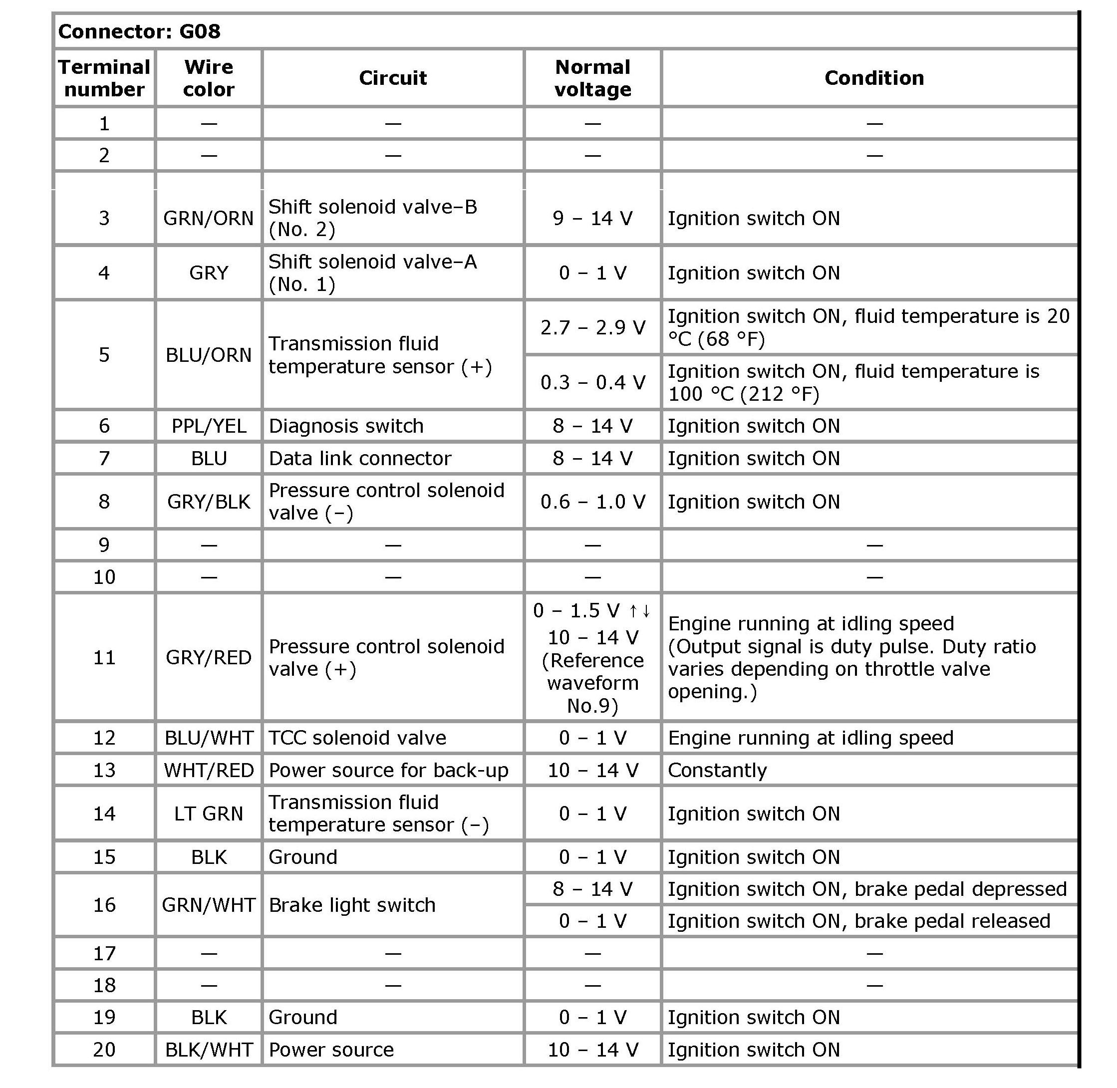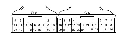 Terminal arrangement of TCM coupler (Viewed from harness side):