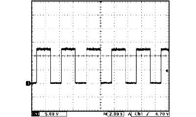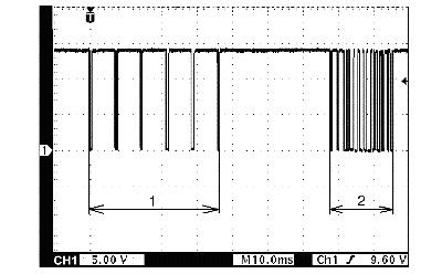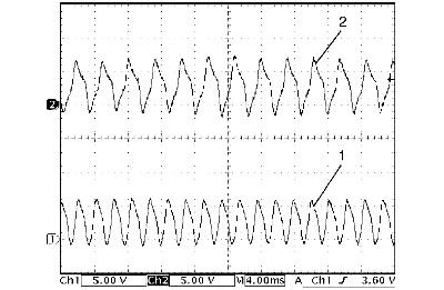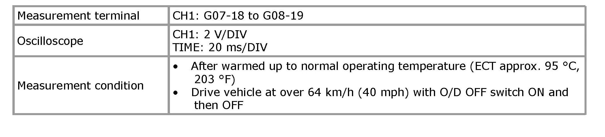 Output shaft speed sensor signal (1) and input shaft speed sensor signal (2) at 64 km/h (40 mph)