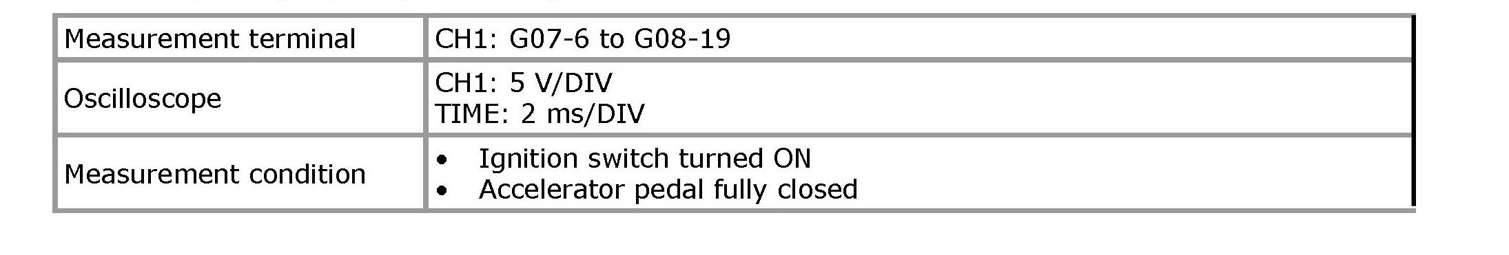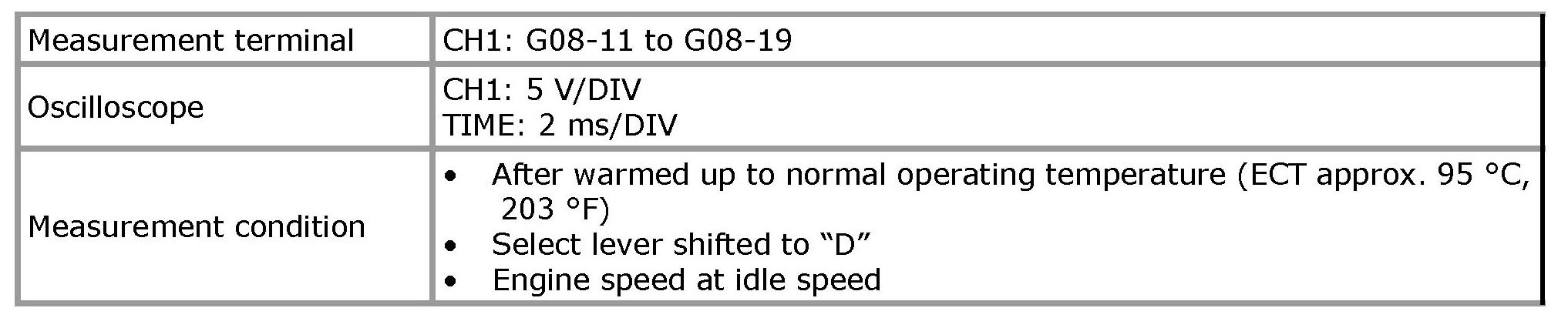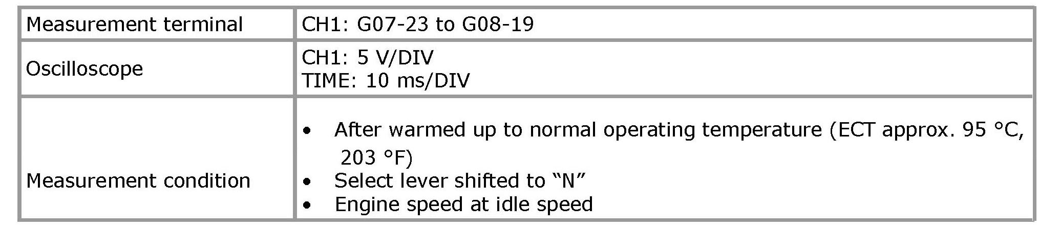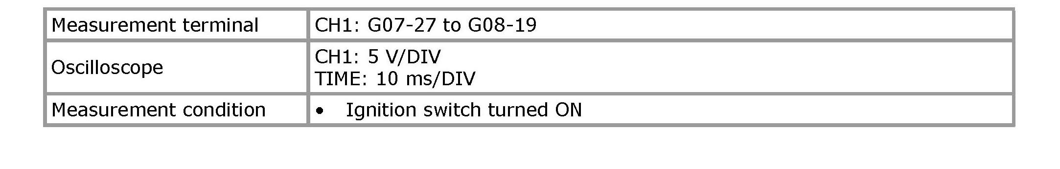NOTE: As each terminal voltage is affected by battery voltage, confirm that it is 11 V or more when ignition switch is ON.