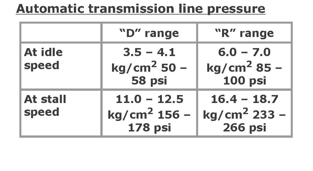 ^ After performing line pressure test, be sure to leave engine running at idle for longer than one minute before performing another line pressure test.