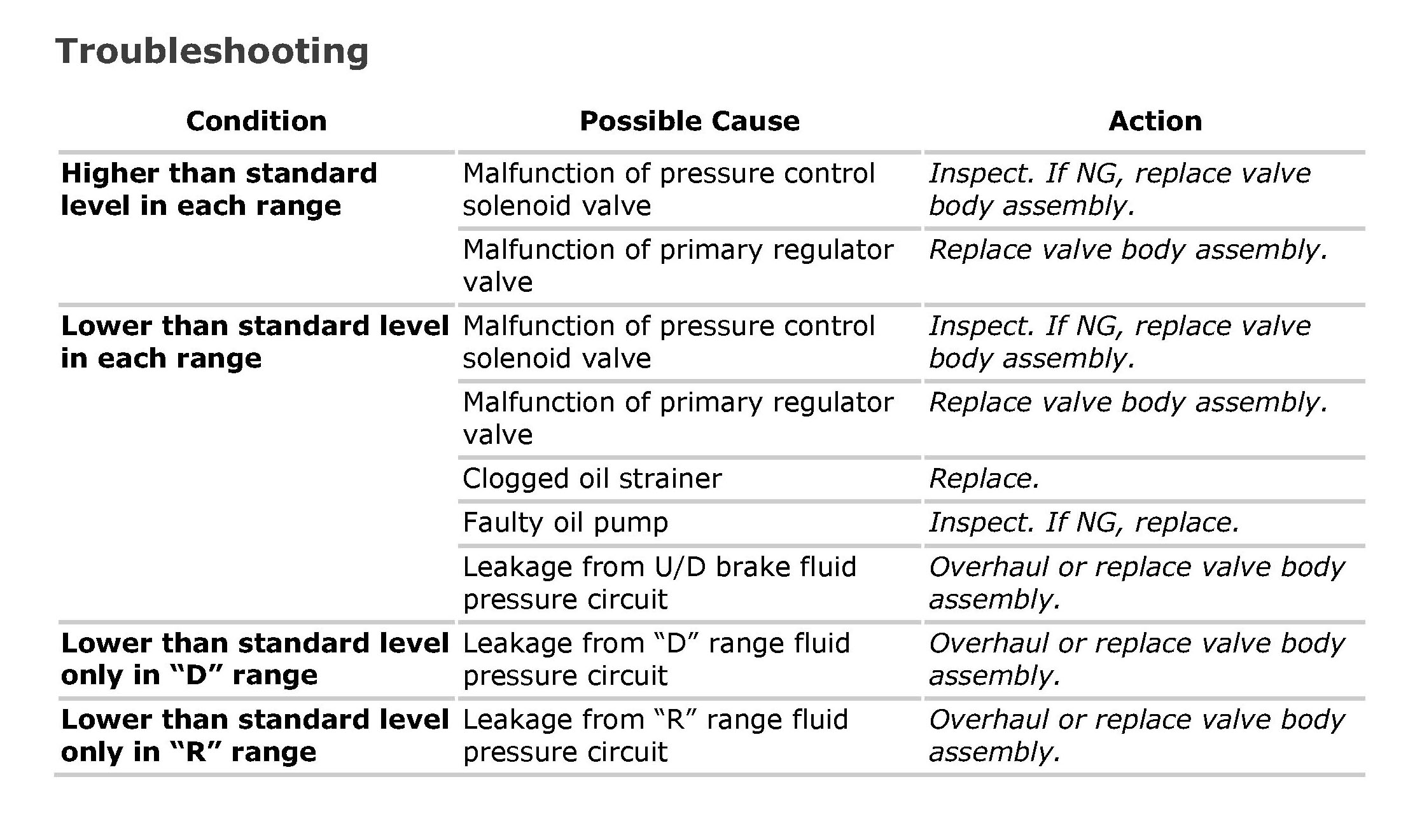 Line Pressure TestPurpose of this test is to check operating conditions of each part by measuring fluid pressure in fluid pressure line.