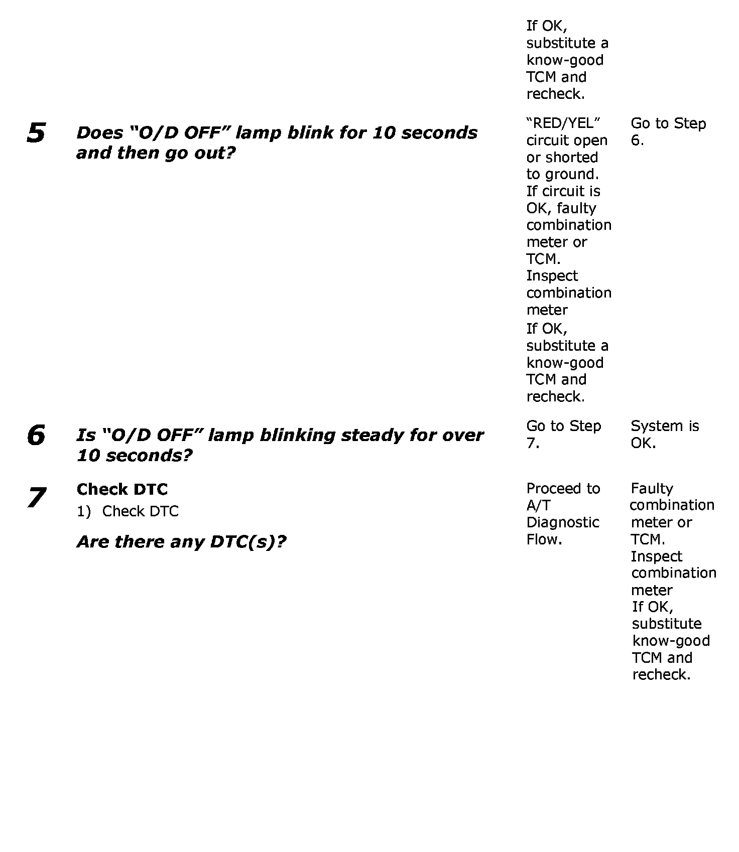 "O/D OFF" Lamp Circuit CheckWiring Diagram