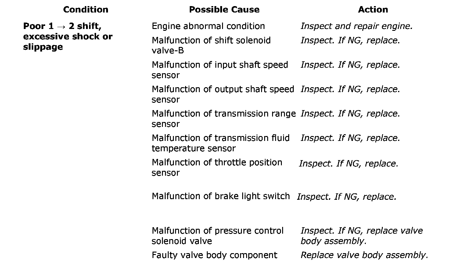 Poor 1 -> 2 Shift, Excessive Shock or Slippage