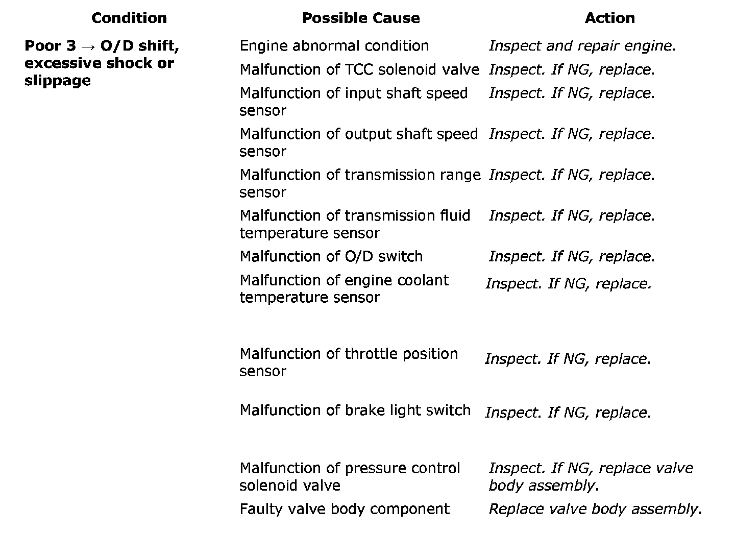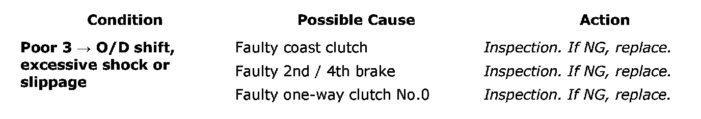 Poor 3 -> O/D Shift, Excessive Shock or Slippage