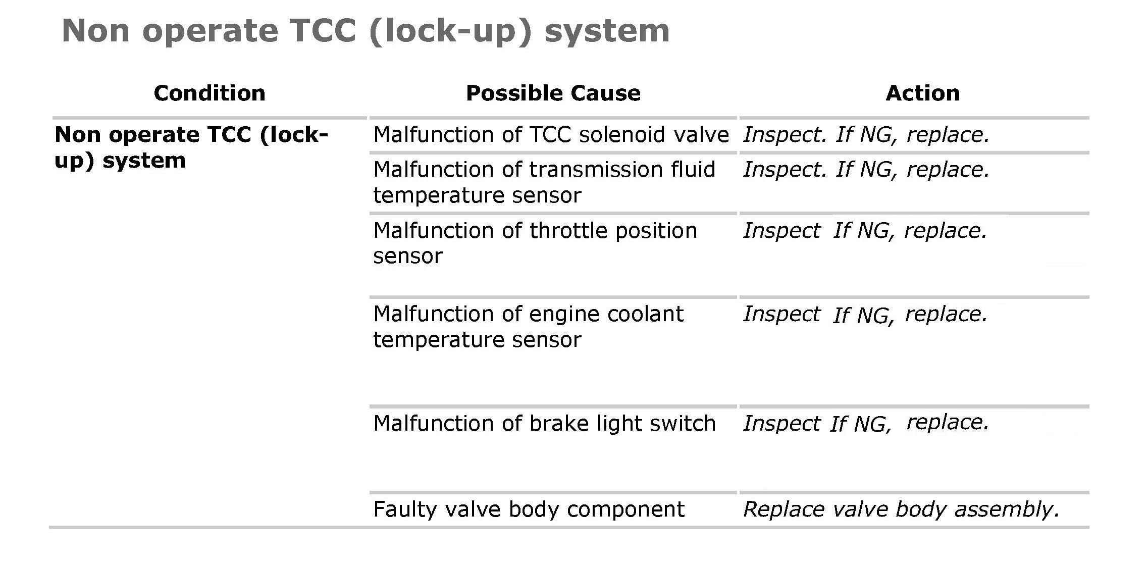 Non Operate TCC (Lock-Up) System