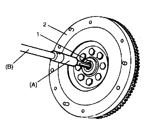 3. When pulling out input shaft bearing (1) from flywheel (2), use the following special tool.