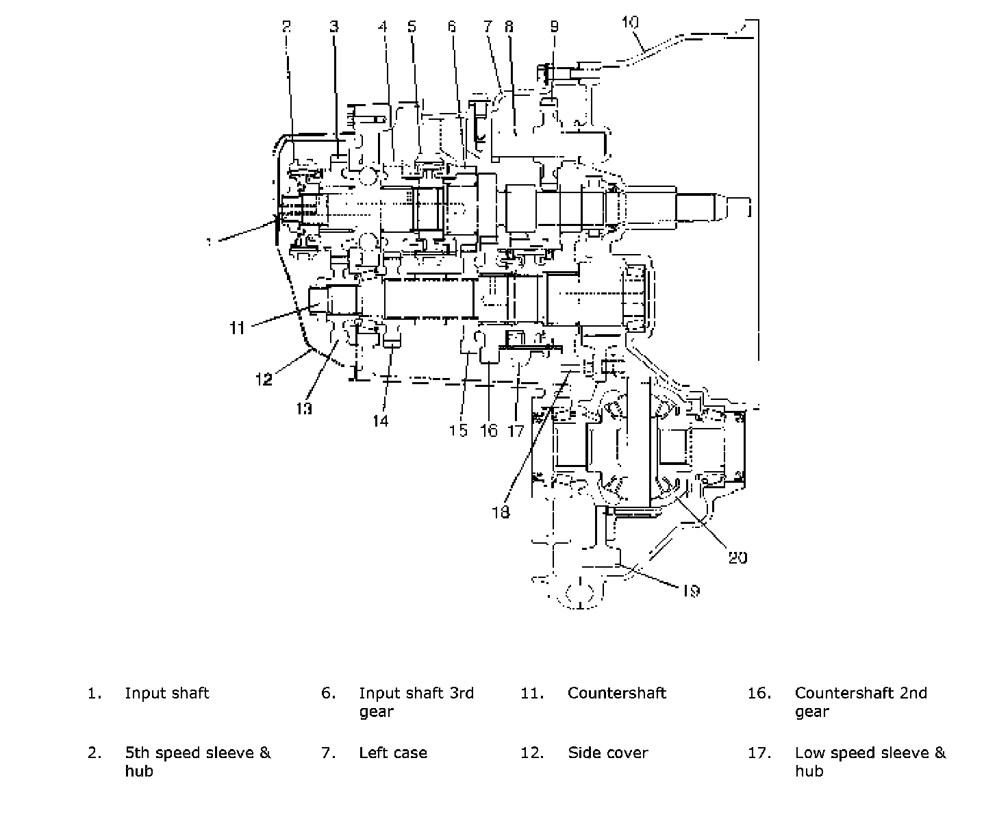 The countershaft turns the final gear and differential assembly, thereby turning the front drive shafts which are attached to the front wheels.