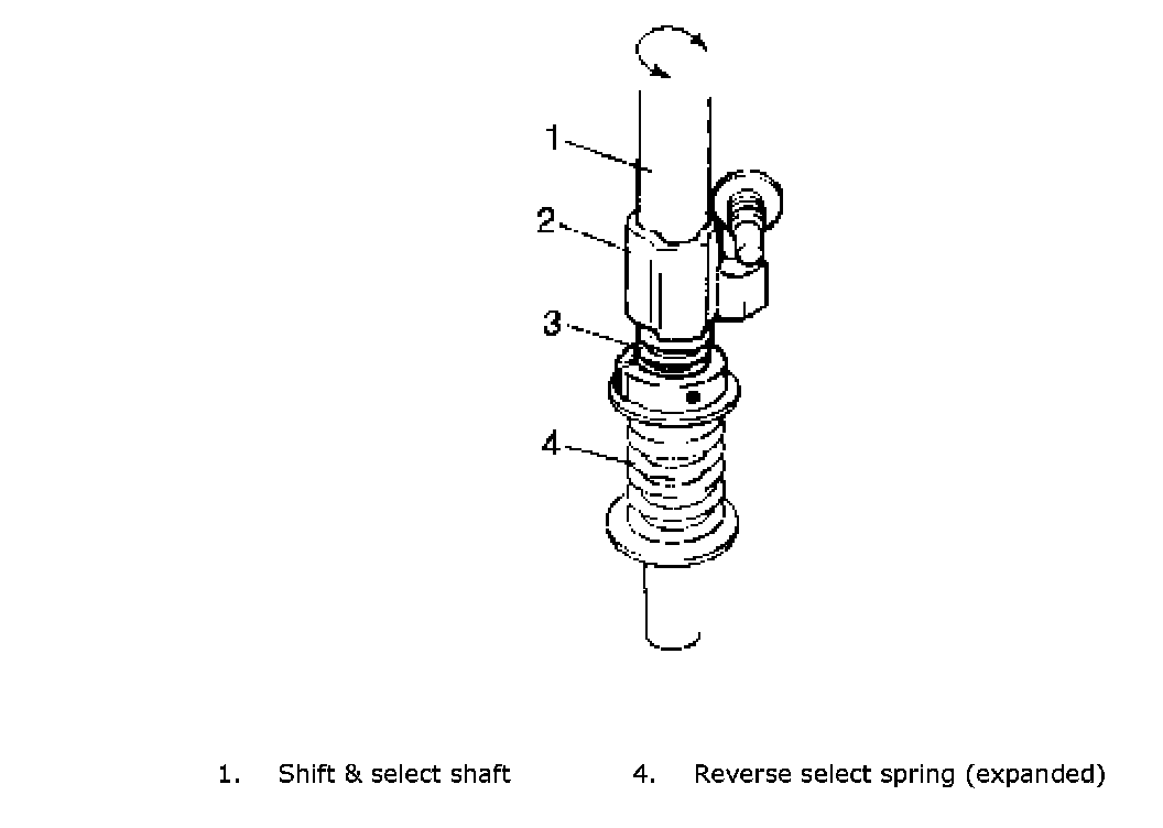 4. When shift lever is shifted from neutral position between 5th gear and reverse gear to reverse gear, shift cam (2) turns counterclockwise to attain reverse gear.