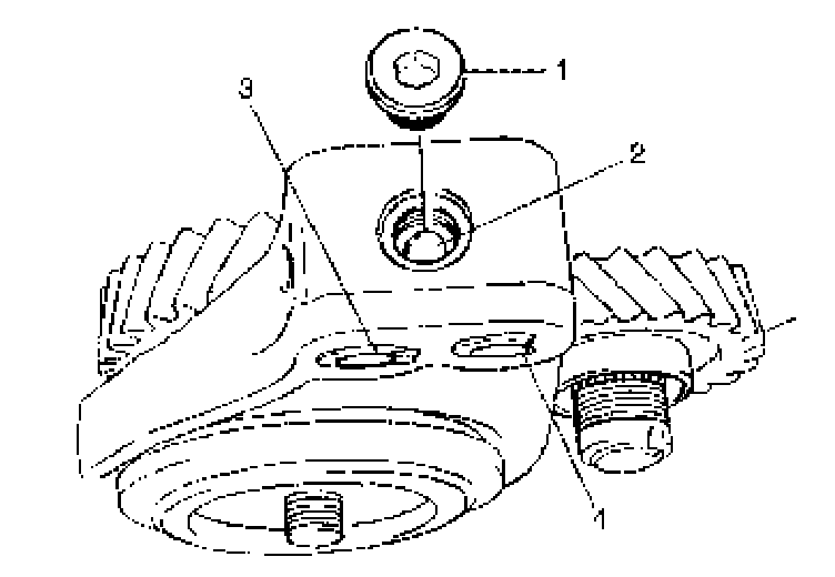 Gear Shift, Select Shaft and Fifth Gears Removal1. Remove gear shift interlock bolt (1) and 5th to reverse interlock guide bolt (2) from transaxle case.