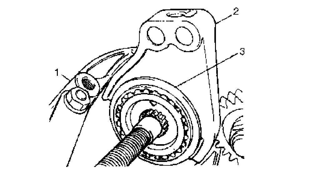 10. Remove 5th shift fork (2), sleeve and hub assembly (3), synchronizer ring and 5th gear all together by using puller (1).
