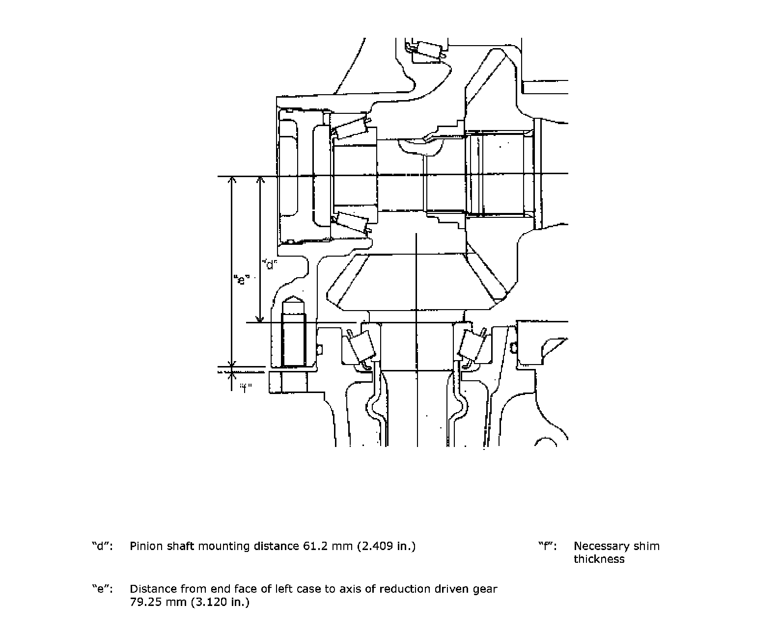 Necessary shim thickness "f" = Distance "c" -