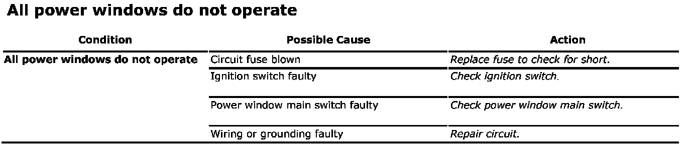 All Power Windows Do Not Operate