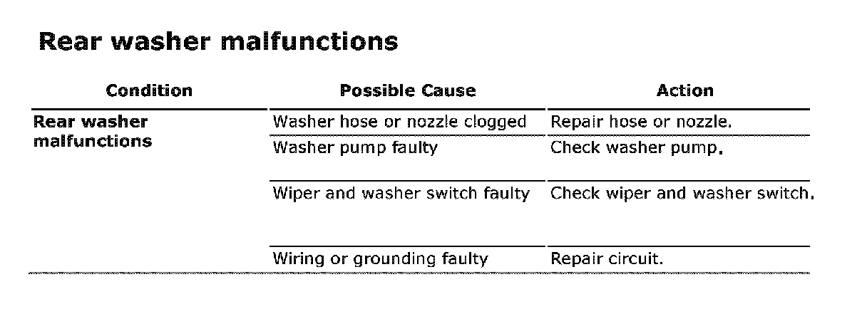 Rear Washer Malfunction