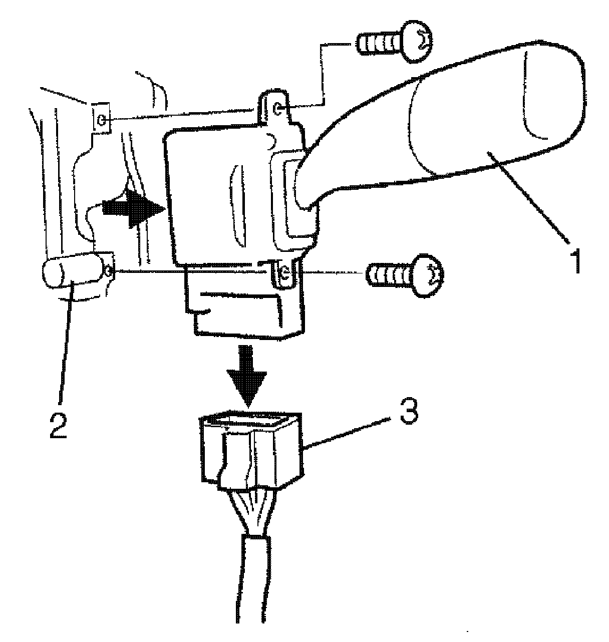 4. Remove windshield wiper and washer switch (1) from combination switch assembly (2) and disconnect its coupler (3).