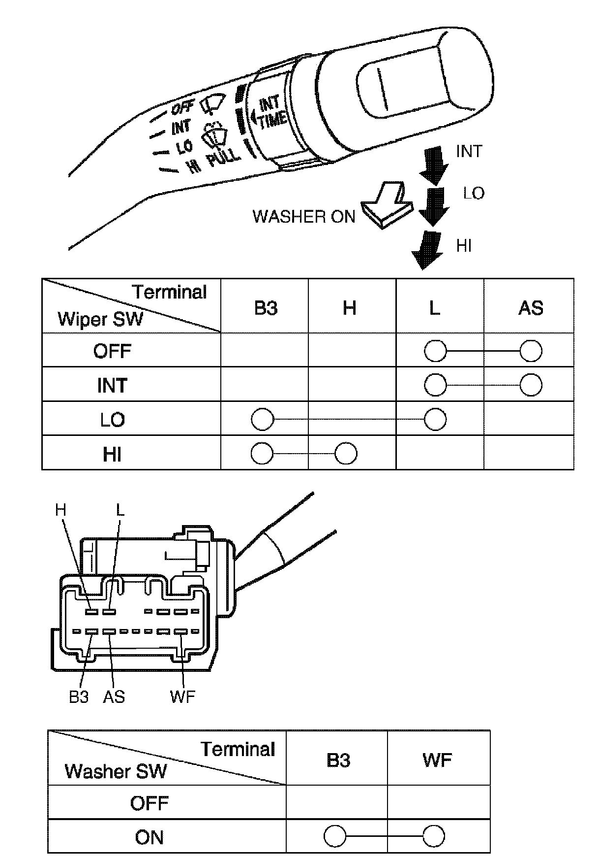 Windshield Wiper and Washer Switch InspectionReference: Windshield Wiper and Washer Switch Removal and Installation
