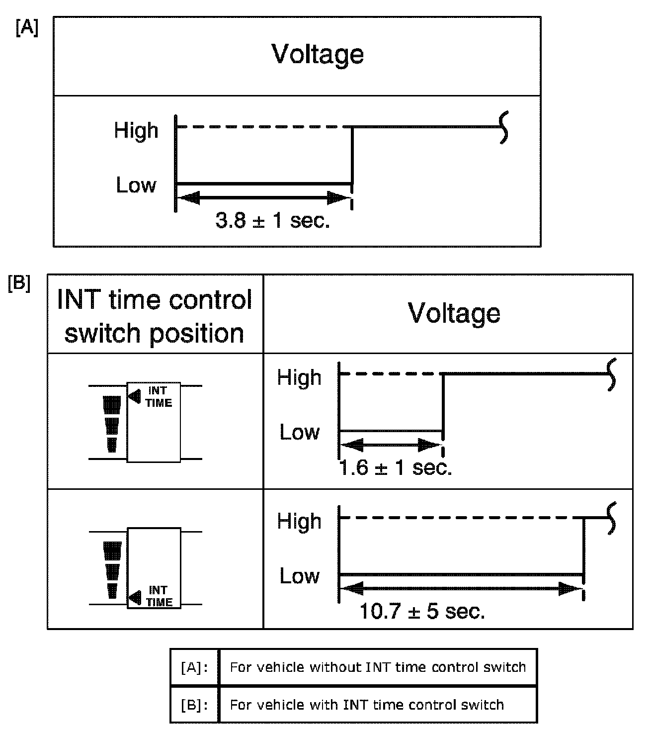 4. When front washer switch is ON, check that voltage changes as shown in figure.