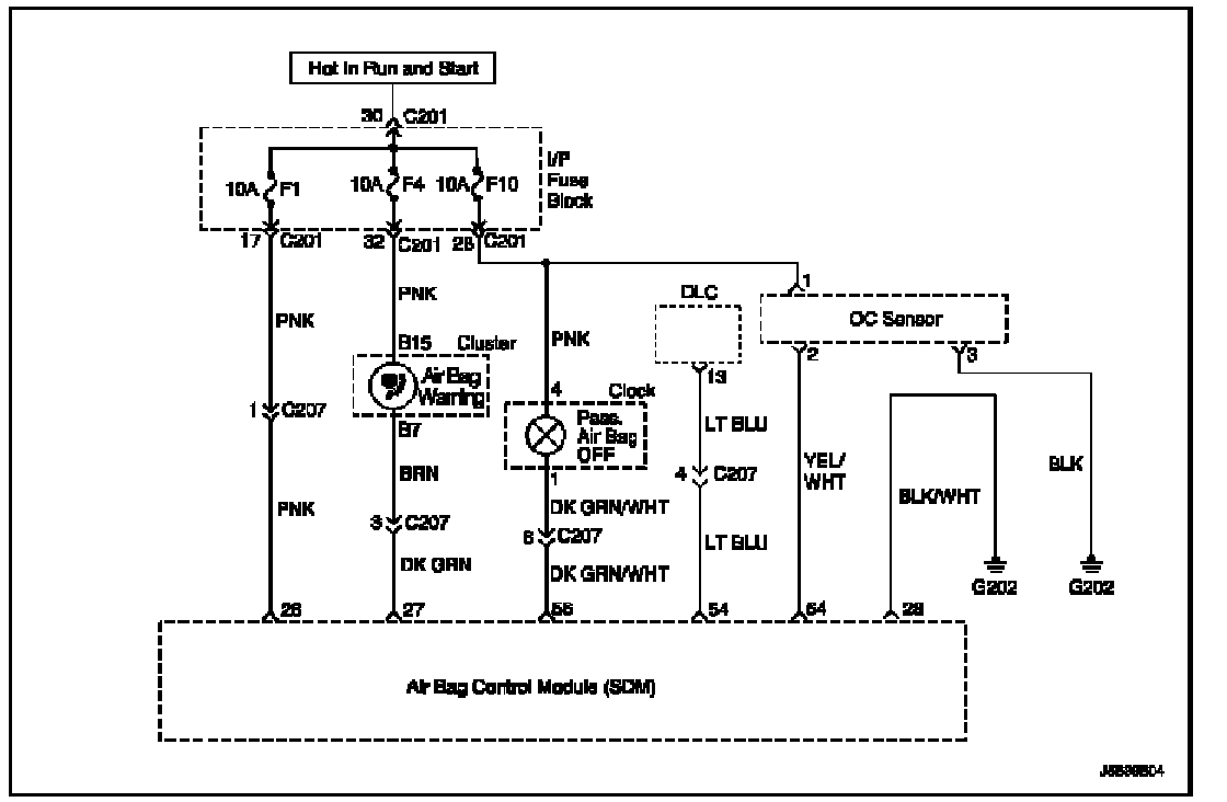 When the ignition switch is turned to ON, the Sensing and Diagnostic Module (SDM) will perform turn-ON test to diagnose critical malfunctions within SDM itself.