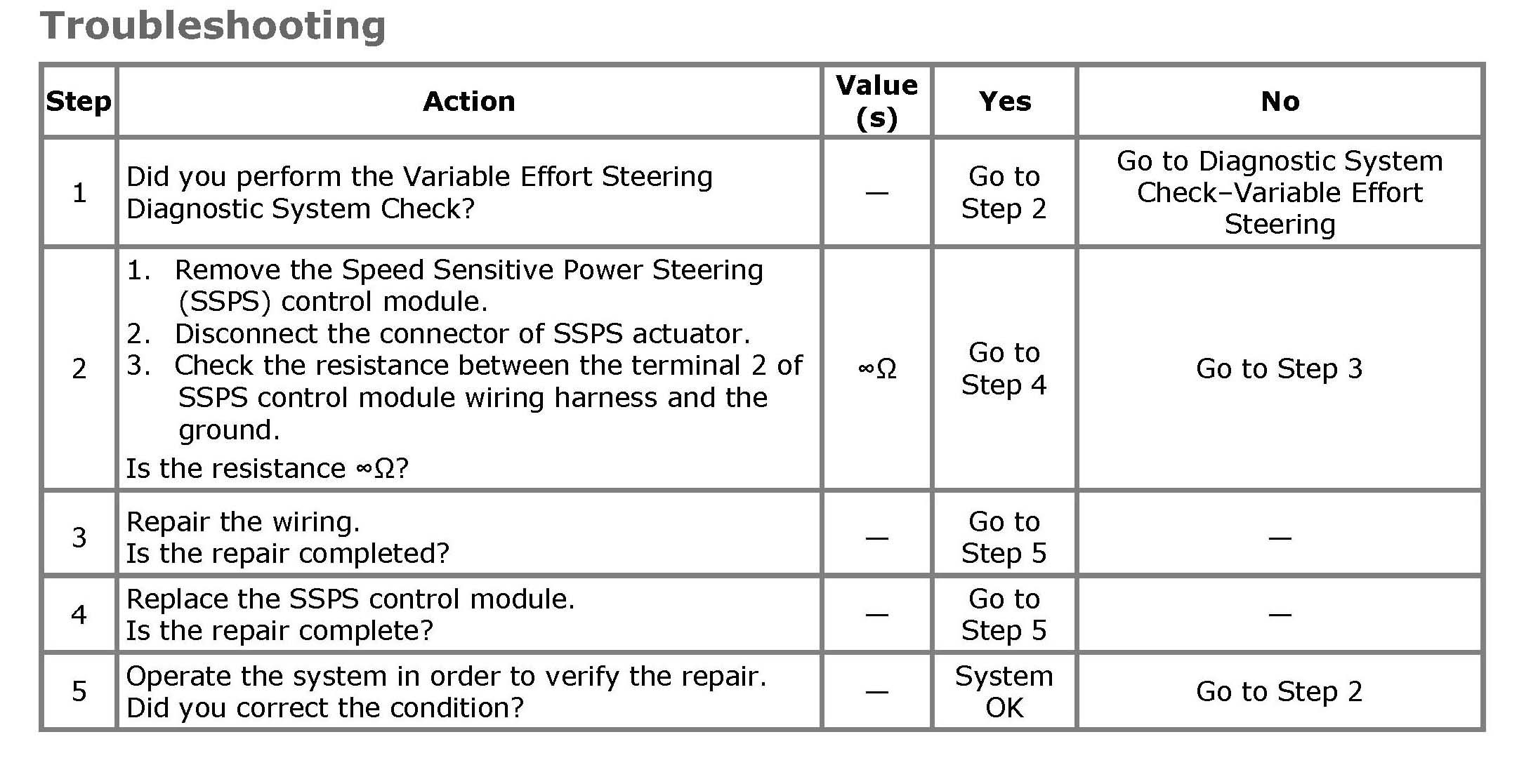 The Speed Sensitive Power Steering (SSPS) control module determines current flow of the power steering fluid flow control valve actuator (solenoid) that is relative to the vehicle speed.