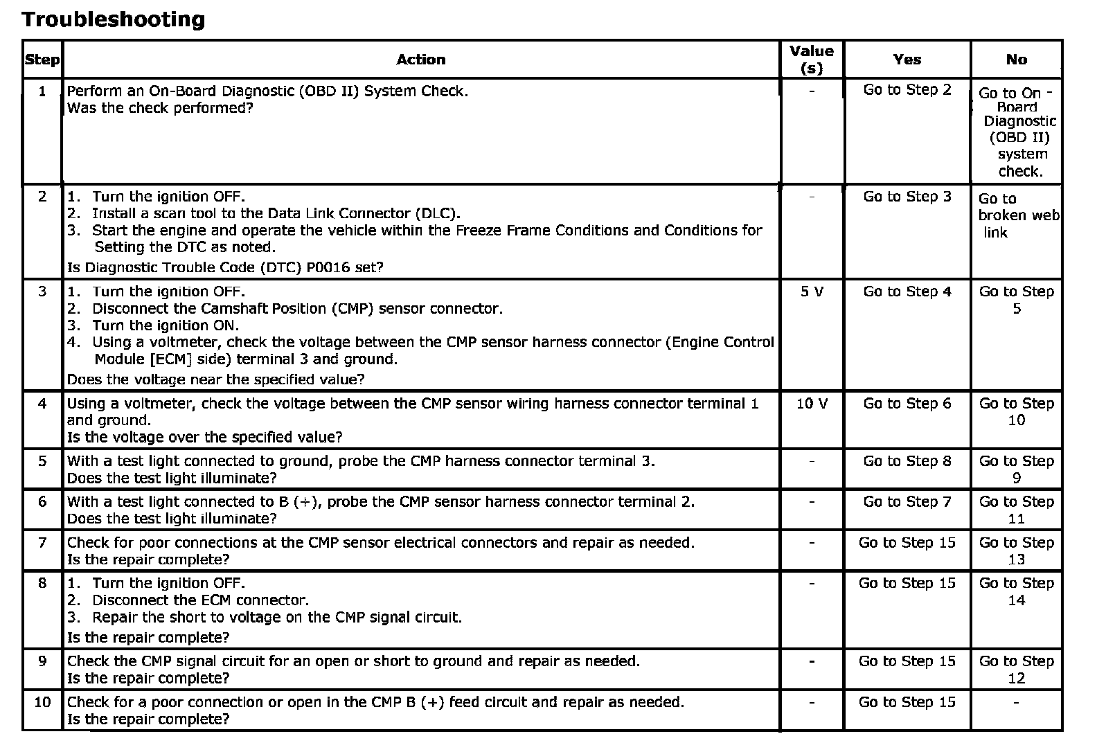 DTC P0016: Crankshaft Position (CKP) - Camshaft Position (CMP) CorrelationWiring Diagram: