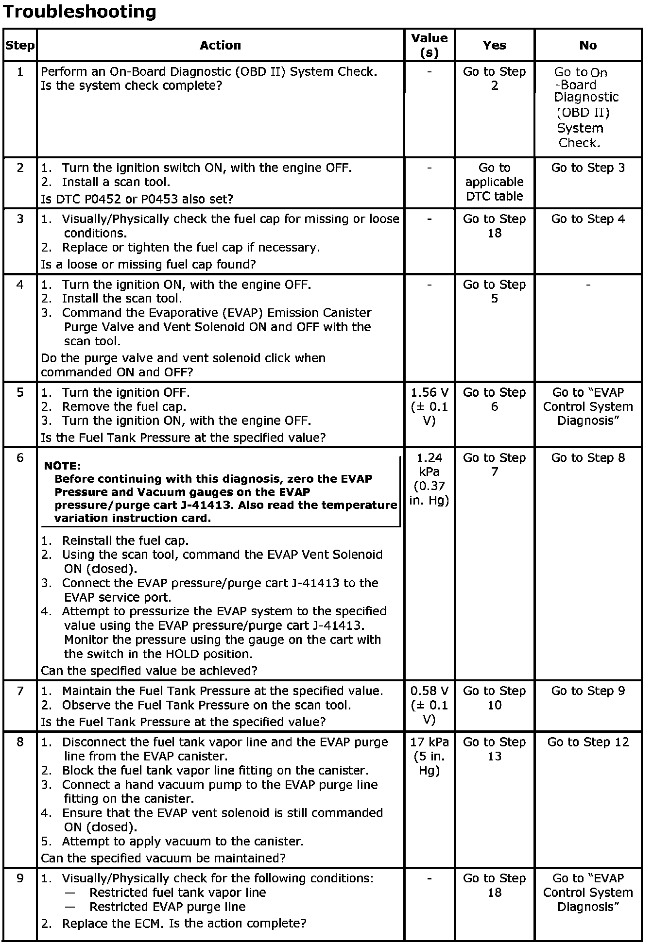 7. Checks for a stuck, closed EVAP Canister Purge Valve.