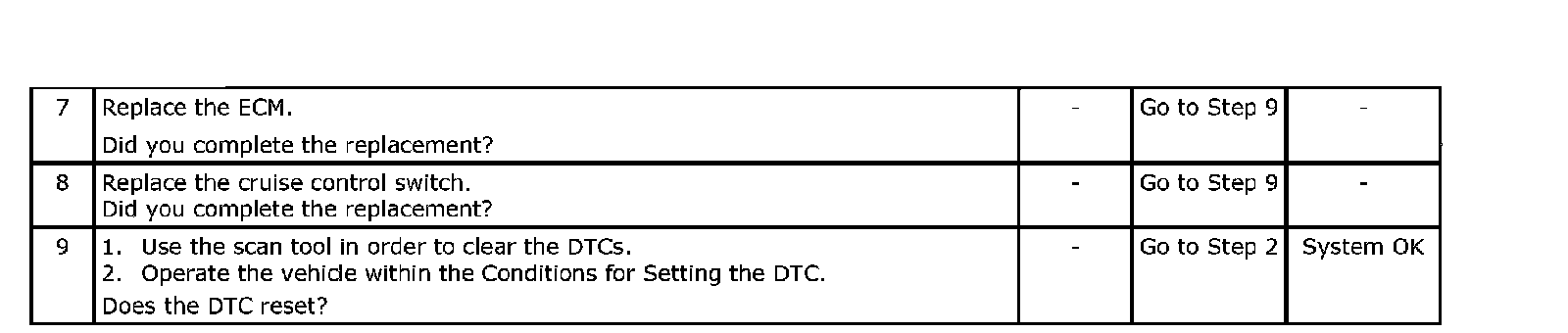 - Rotate the steering wheel to both steering stops and activate each cruise control switch separately. With a scan tool, observe the associated cruise control switch parameter. This will help eliminate the possibility of an internally open or shorted contact coil.