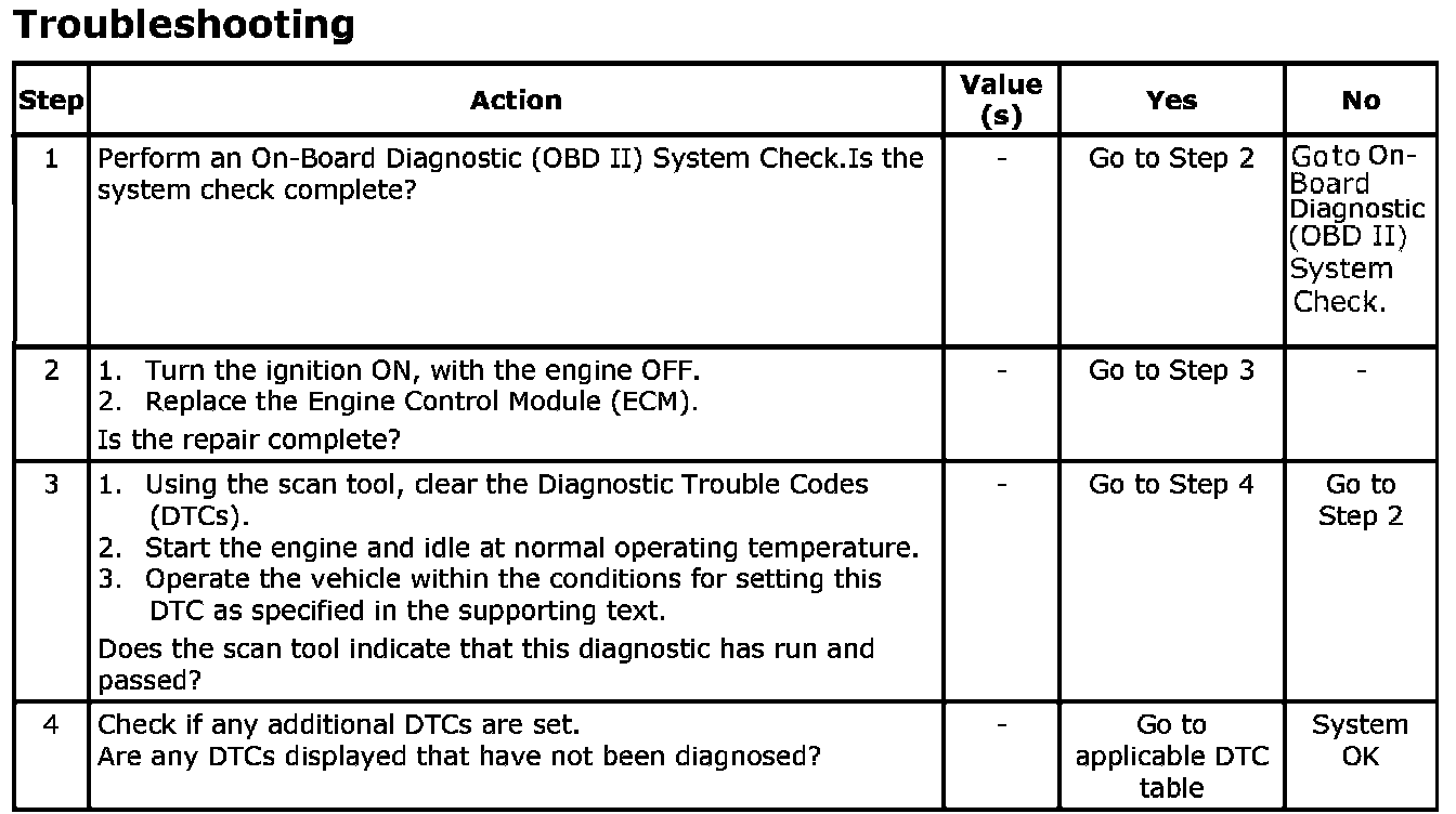 The Engine Control Module (ECM) is the control center of the fuel injection system. It constantly looks at the information from various sensors and controls the systems that affect vehicle performance. The ECM also performs the diagnostic function of the system. It can recognize operational problems, alert the driver through the Malfunction Indicator Lamp (MIL) (Check Engine) and store a Diagnostic Trouble Code (DTC) or DTCs which identify the problem areas to aid the technician in making repairs. An Electrically Erasable Programmable Read Only Memory (EEPROM) is used to house the program information and the calibrations required for engine, transmission and powertrain diagnostics operation. The Diagnostic Trouble Code (DTC) will stored, when the ECM detects SPI communication between main CPU and output driver I/C is corrupted.