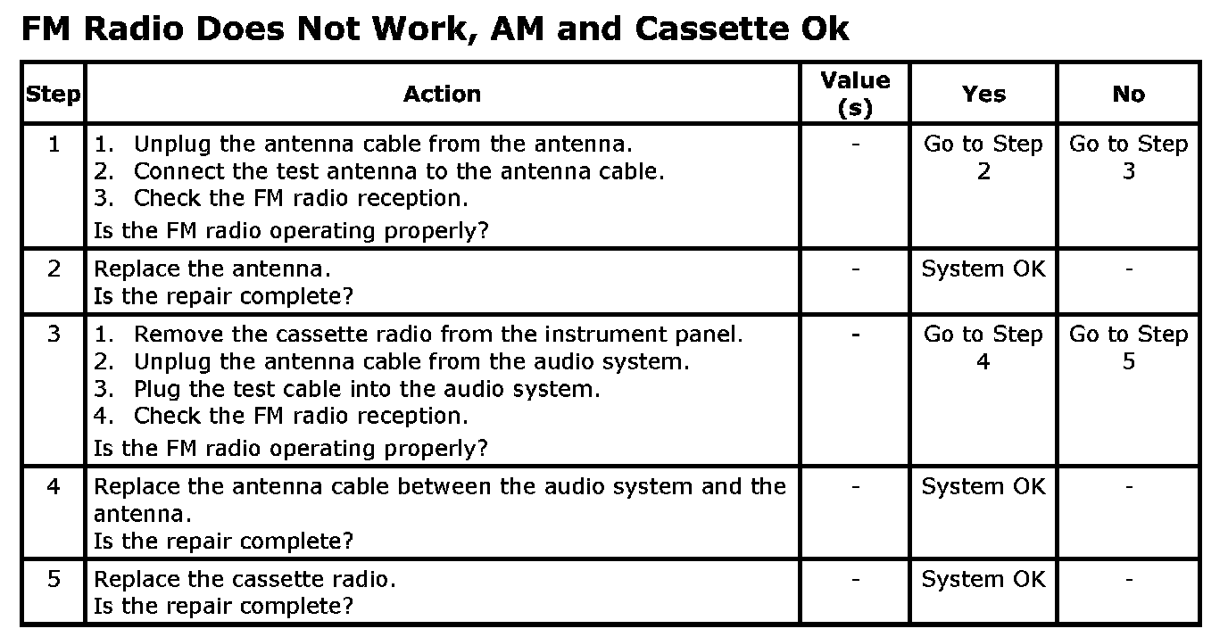 FM Radio Does Not Work, AM and Cassette Ok