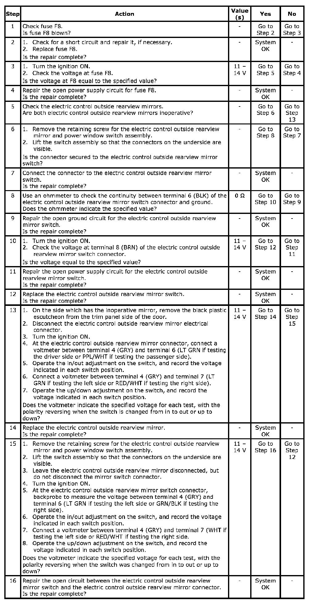 Electric Control Outside Rearview Mirrors Do Not Adjust