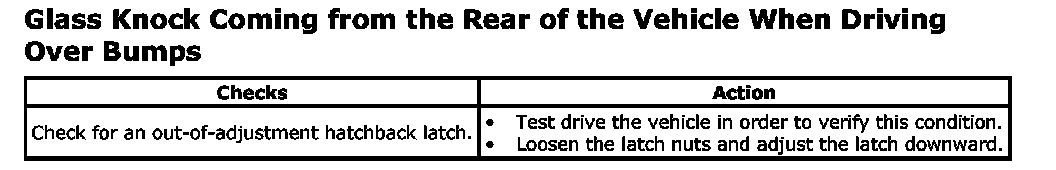 Glass Knock Coming from the Rear of the Vehicle When Driving Over Bumps