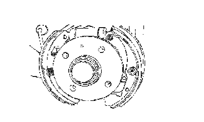 1. Install the new parking brake cable (if necessary) through the rear drum brake backing plate and attach to the brake trailing shoe lever.