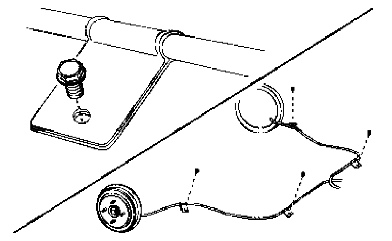 8. Install the parking brake cable to the clip near the fuel tank strap.