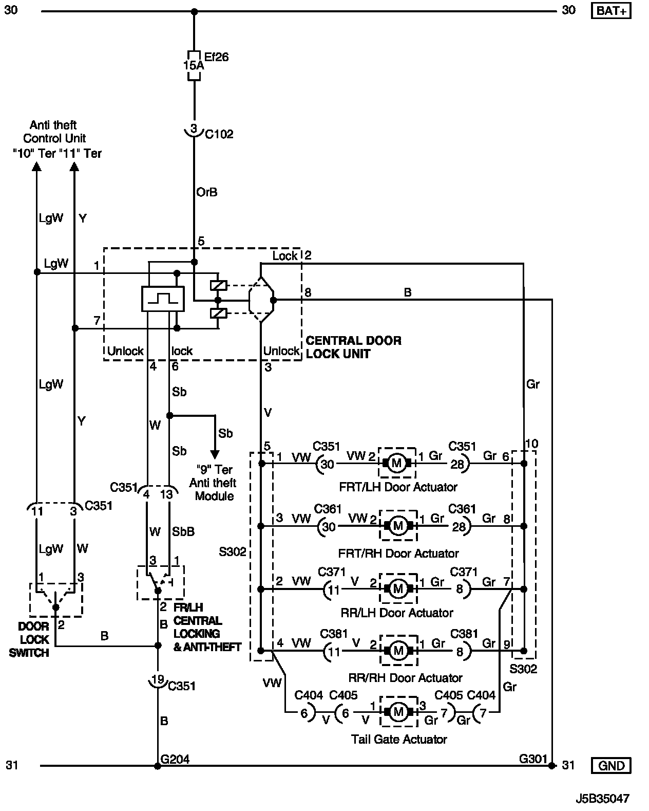 Central Door Locking System Circuit Wiring Diagram (For STATION WAGON Model):