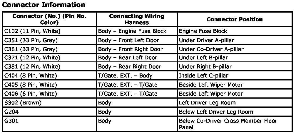 CONNECTOR IDENTIFICATION SYMBOL AND PIN NUMBER POSITION