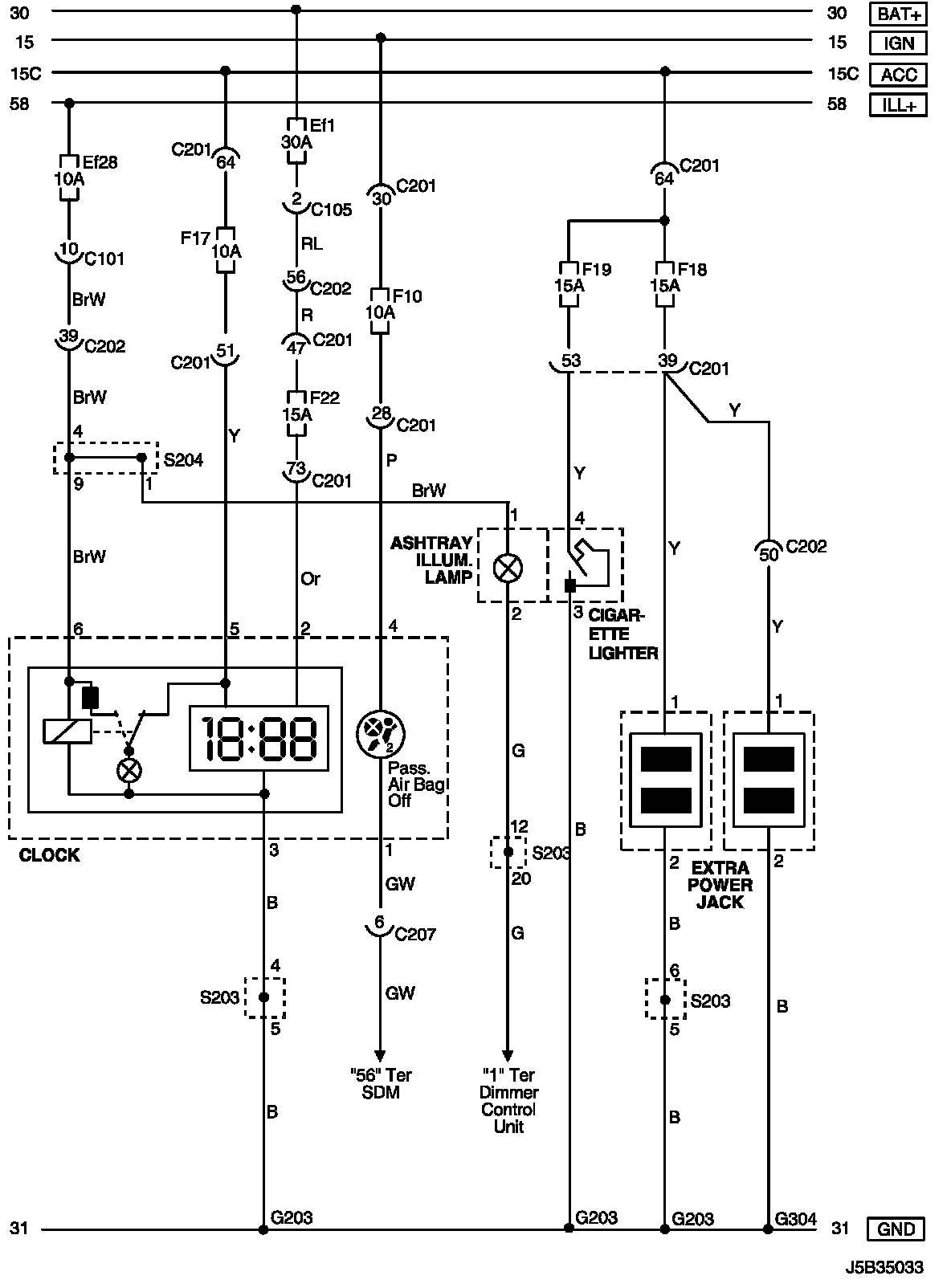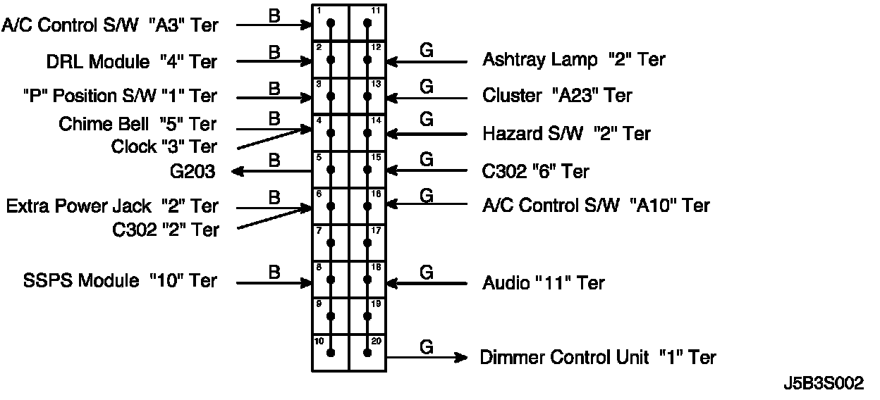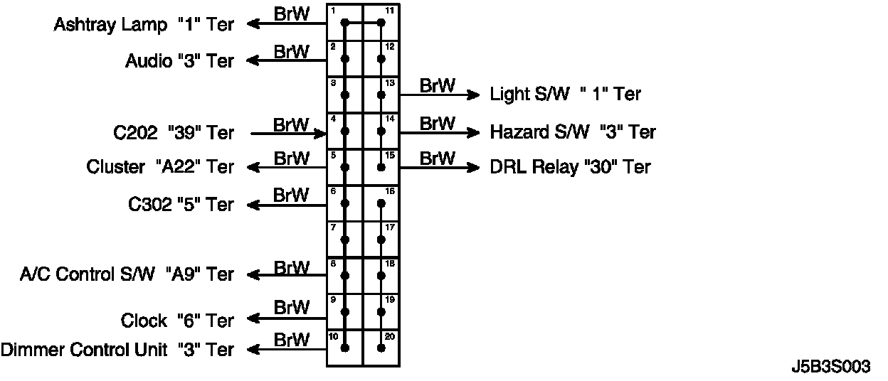 Clock, Cigar Lighter, Ashtray Illum. Lamp and Extra Power Jack Circuit Wiring Diagram (M/T: For STATION WAGON Model):