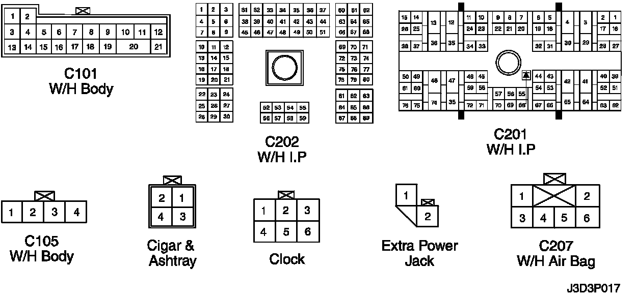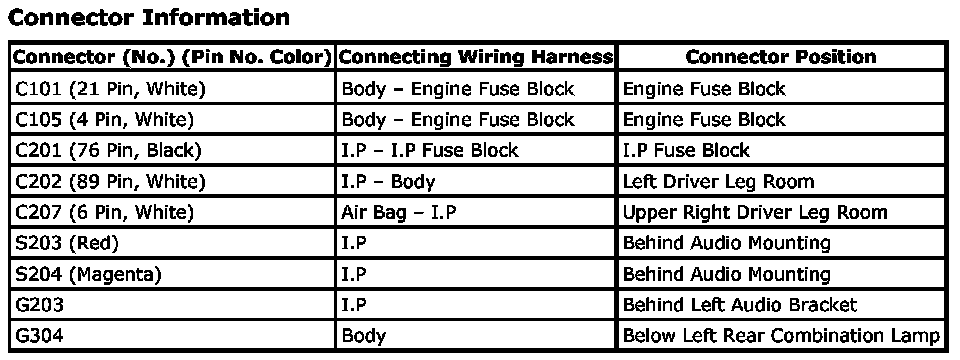 CONNECTOR IDENTIFICATION SYMBOL AND PIN NUMBER POSITION