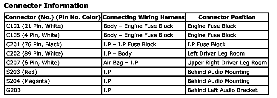 CONNECTOR IDENTIFICATION SYMBOL AND PIN NUMBER POSITION
