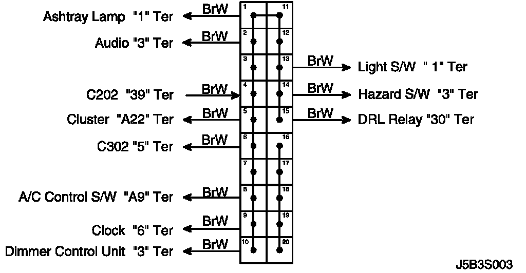 Clock, Cigar Lighter, Ashtray Illum. Lamp and Extra Power Jack Circuit Wiring Diagram (M/T: NOTCHBACK and HATCHBACK Model):