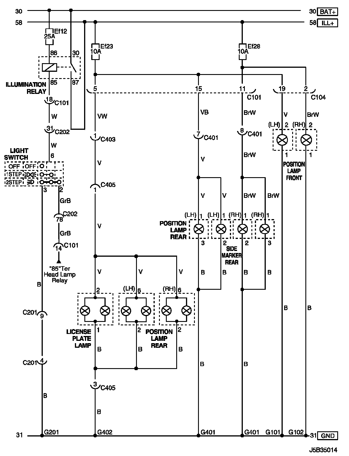 Lamp (License Plate, Side Marker and Front/Rear Position) Circuit: Hatchback