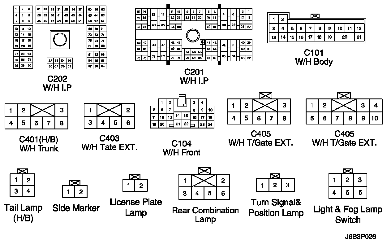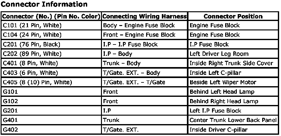 CONNECTOR IDENTIFICATION SYMBOL AND PIN NUMBER POSITION