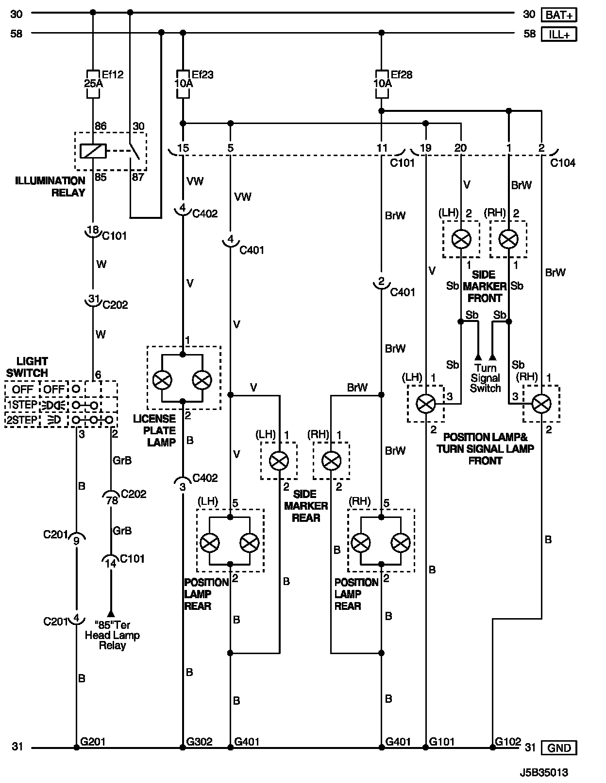 Lamp (License Plate, Side Marker and Front/Rear Position) Circuit (For NOTCHBACK Model):
