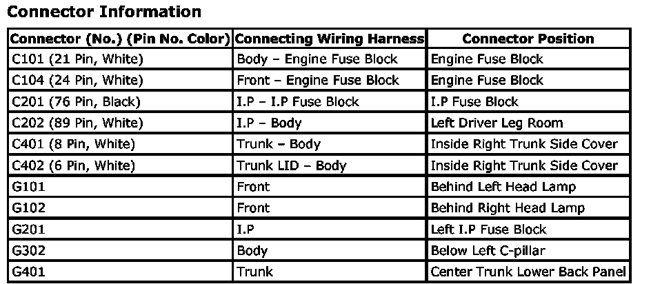 CONNECTOR INFORMATION